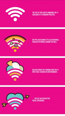 We use the basic WI-FI icon to fashion it in an interesting way to promote different offerings around the mall.