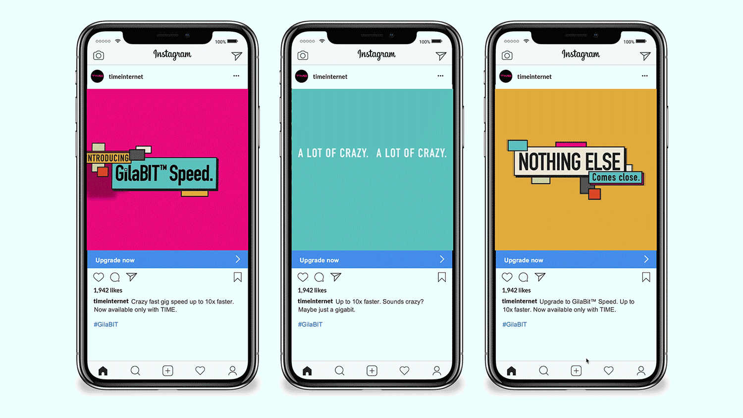 TIME is the undisputed king of speed. Leading the way with 1GBPS – The next tier of ultra fast broadband. We wanted to take this chance to brand the speed, brand the experience. GilaBIT Speed – Up to 10X Faster with 1Gbps. Nothing Else Comes Close